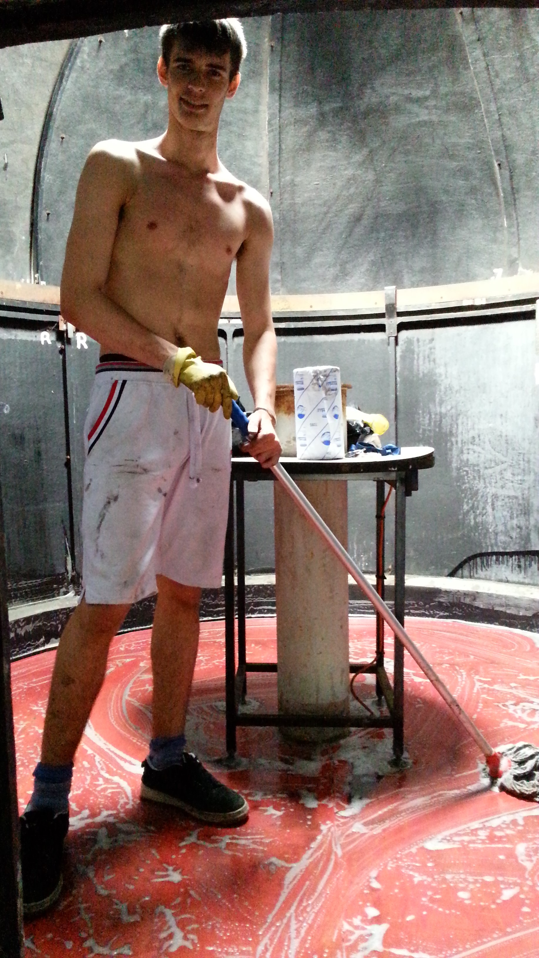 So sorry for the massive delay. We are now finally starting to make some progress in the dome. This is basically because I’ve got a student helper called Edo from Milan who is one of our best undergraduates and as you can see he likes getting his top off. This wasn’t part of the job description (i.e. cleaning. Stripping wasn’t either.) but it was taking a while to get anyone else to do it and he said “let me at it!”.